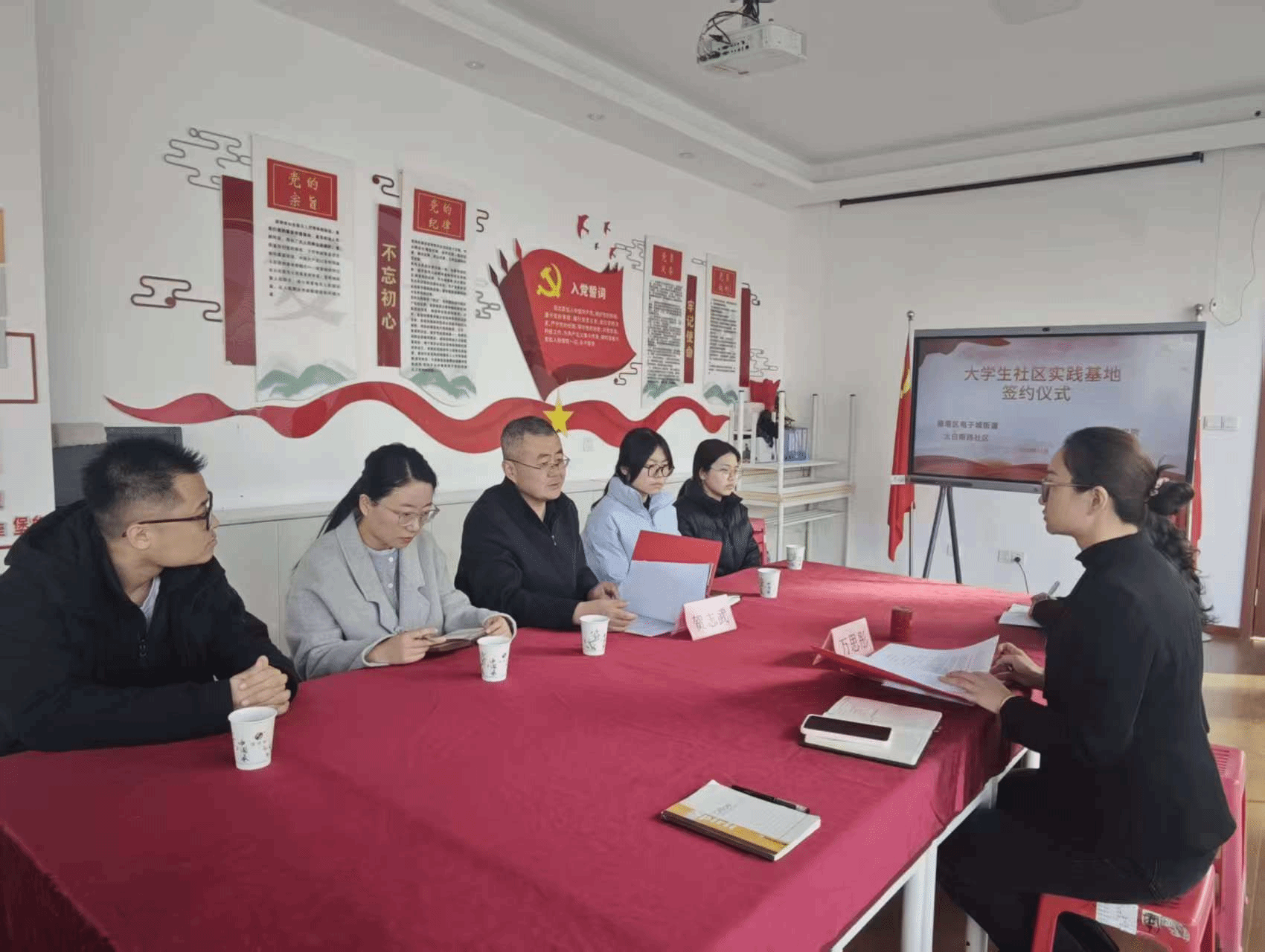 2025年11月19日,Beat365中文官方网站经济管理学院与社区代表联合举行社会工作专业人才培养协议签订仪式。经济管理学院副院长贺志武,社工系教师辛莫野、赵雨晴、学生代表和太白南路社区书记万思彤及其他工作人员共同参会。
