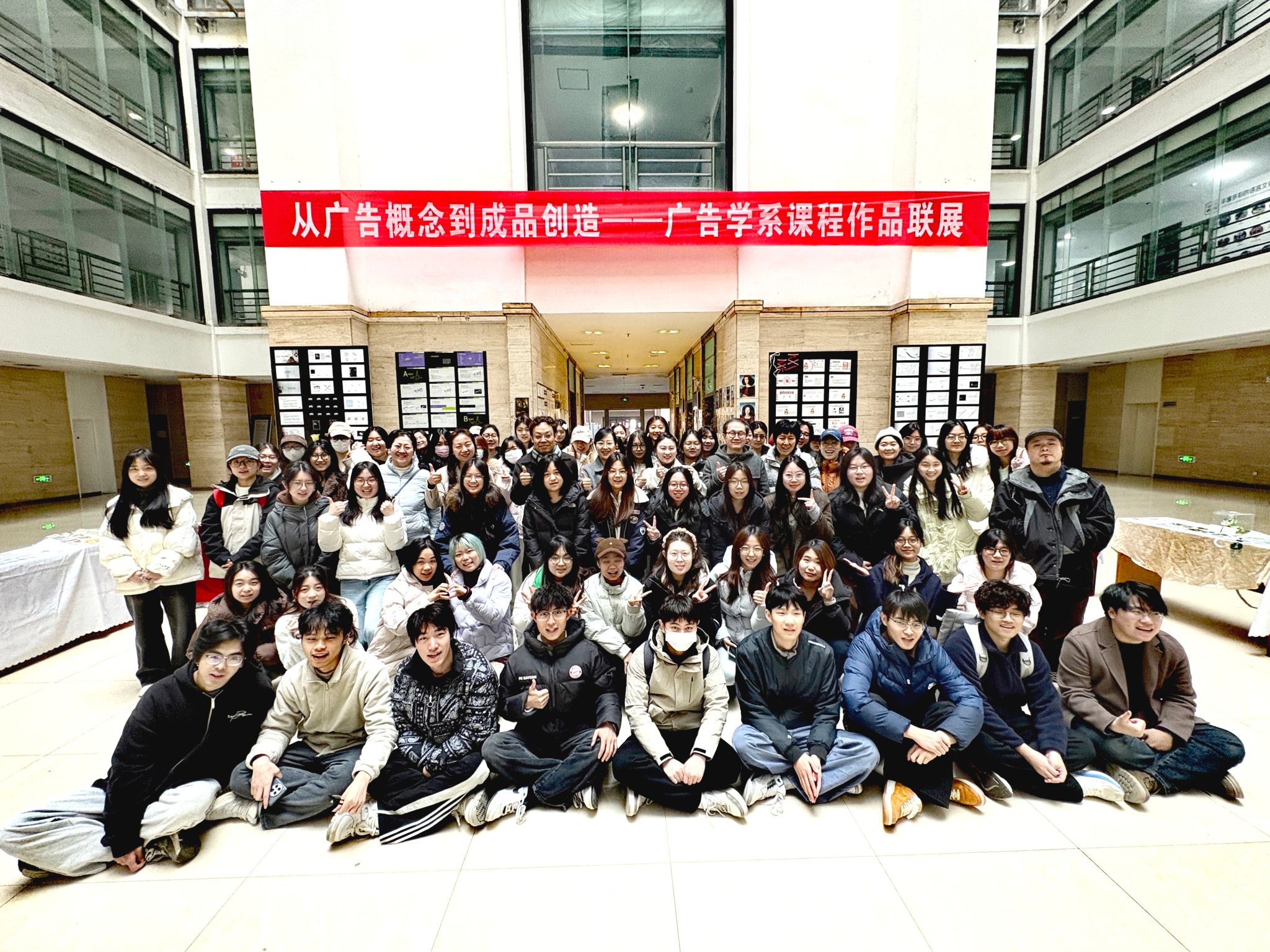 12月19日,文学院开展“从广告概念到成品创造”课程作品联展。文学院院长董洪杰、党总支书记朱芳芳、副院长苏羽、党总支委员李冰清、广告学系主任张倩等师生参加。