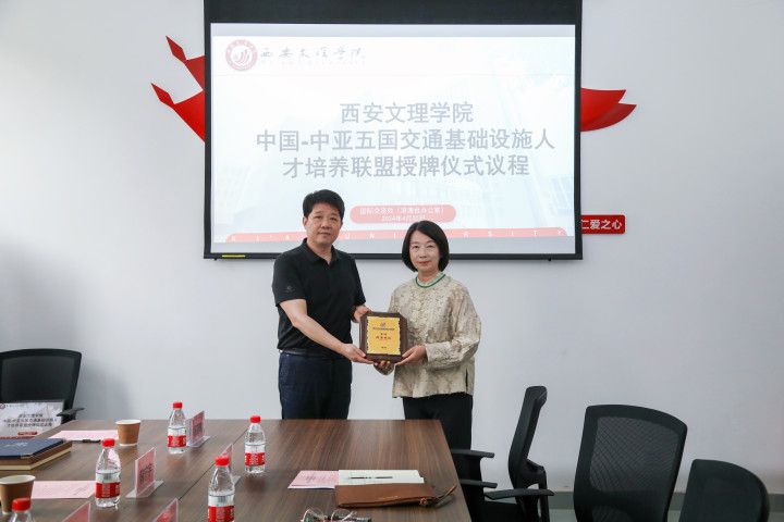 4月20日上午,中国-中亚五国交通基础设施人才培养联盟理事单位授牌仪式在Beat365举行。陕西省教育厅对外合作与交流处处长文通,西安市教育局对外合作与交流处处长韩宁宇,中国-中亚五国交通基础设施人才培养联盟秘书处办公室主任张伟、副主任杨望暾,Beat365党委委员、副校长邬连东出席会议。会议由Beat365国际交流处处长俞华主持。