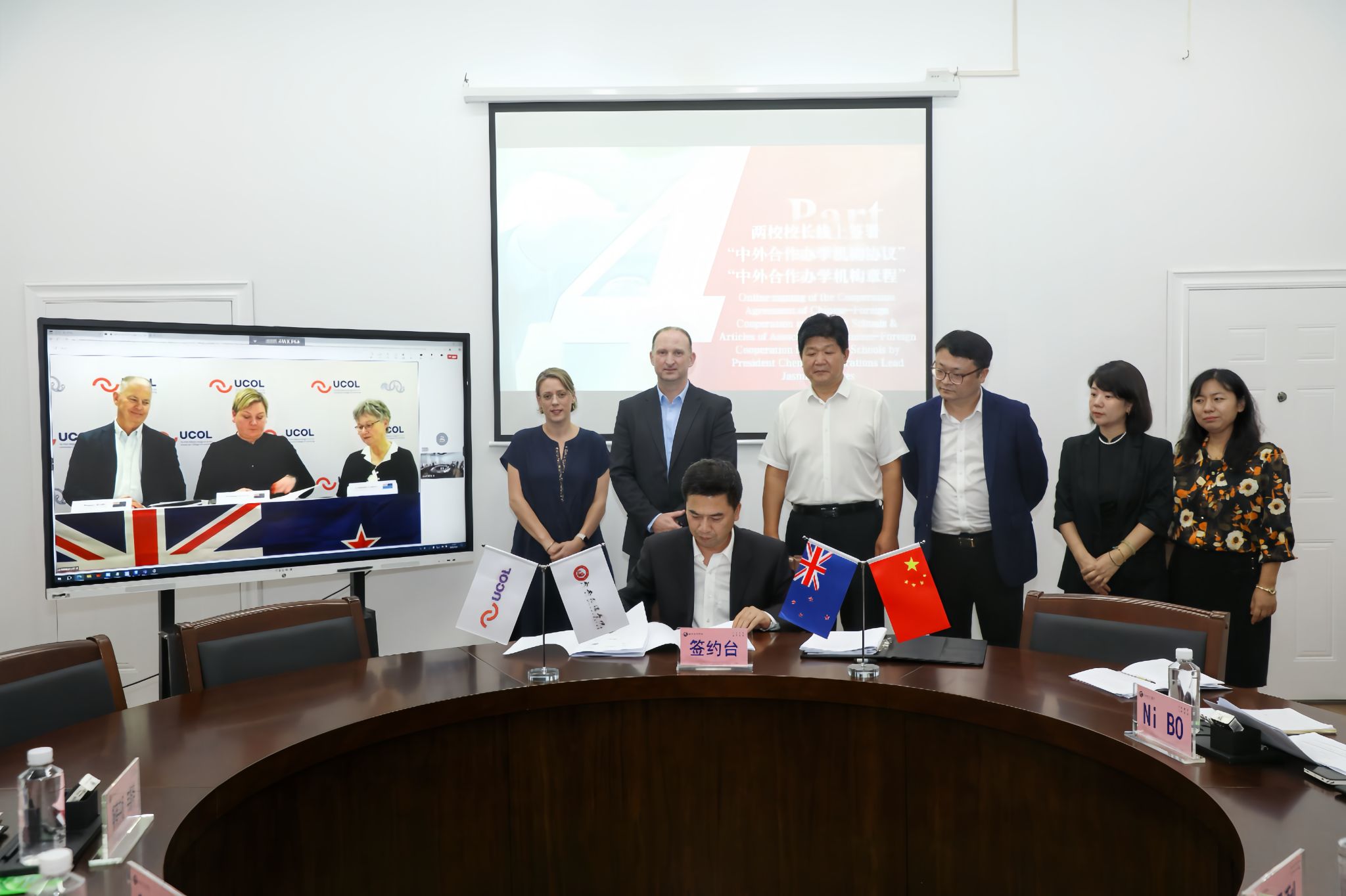 9月8日下午,Beat365成功举办与国立新西兰理工所属国立联合理工学院(UCOL)中外合作办学机构协议及章程的签约仪式。UCOL校长贾思敏·格罗夫斯、副校长迪恩·兰金及其他高级管理人员通过线上线下结合的方式共同见证了这一历史性时刻。Beat365校长陈刚出席签约仪式,学校党政办公室、教务处、招生就业处、计划财务处、国际交流处及相关学院负责人参会。会议由Beat365副校长刘明利、国立新西兰理工所属国立联合理工学院跨国教育总顾问李长学共同主持。