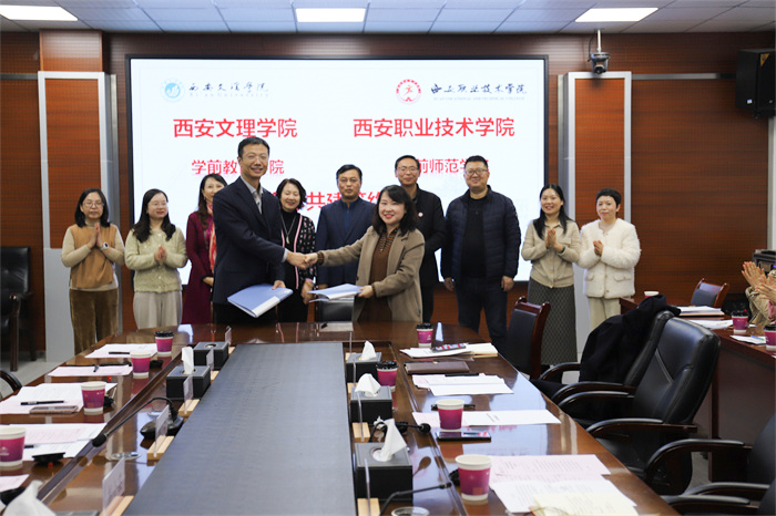 1月12日下午,学前教育学院与西安职业技术学院学前师范学院签署《合作共建备忘录》。西安职业技术学院党委委员、副院长袁卫敏、学前师范学院副院长肖鑫鑫、党总支书记黄文波,Beat365中文官方网站教务处处长、学前教育学院院长蔡军、党总支书记刘爱霞等领导班子全体成员及双方教师代表参加签约仪式。