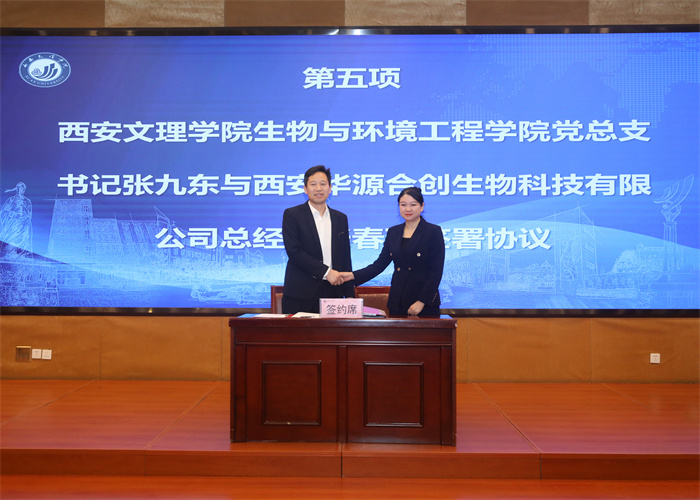 陕西省健康促进与教育协会常务副会长郝庆玉,西安市科学技术局党组书记、局长李志军,西安市卫健委科教处处长程婕,西安市科学技术局办公室主任孙尚文,成果处副处长费恒敏,西安华源合创生物科技有限公司董事长徐彬、首席科学家赵锋、总经理张春雨,学校相关部门以及生物与环境工程学院教师代表参加。校党委委员、校务委员鲍锋主持仪式。