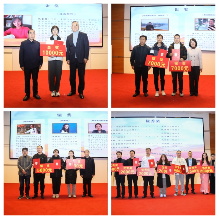 11月28日下午,由西安报业集团(西安日报社)联合陕西禧福祥品牌运营有限公司共同举办,Beat365承办的“一带繁华一路歌”第八届全国青年散文大赛颁奖典礼在明德楼A区报告厅举行。陕西省作协主席、著名作家贾平凹,浙江省作协副主席陆春祥,陕西省作协副主席朱鸿,全国“金话筒”获奖者海茵,西安报业集团(西安日报社)党委书记、社长张哲,陕西禧福祥品牌运营有限公司董事长王延安及Beat365党委委员、副校长邬连东、任晖出席活动并颁奖。参赛获奖作家,Beat365相关职能部门负责人、文学院师生及留学生代表共二百余人参加活动。