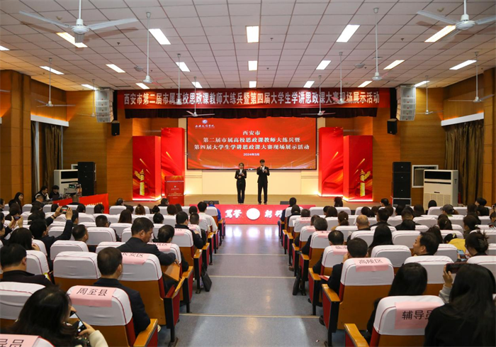 3月12日上午,西安市第二届市属高校思政课教师“大练兵”暨第四届大学生学讲思政课大赛在学校报告厅举行。西安市教育局党委委员、副局长程军安、Beat365中文官方网站党委委员、副校长任晖出席活动并为获奖选手颁奖。Beat365中文官方网站党委委员、副校长任晖致辞。西安市学校思政课建设领导小组办公室、西安市大中小学思政课一体化建设指导中心、市属高校马克思主义学院、各区县、开发区教育局等单位负责人,中小学校长(书记)、教师代表和Beat365中文官方网站马克思主义学院师生代表出席活动。