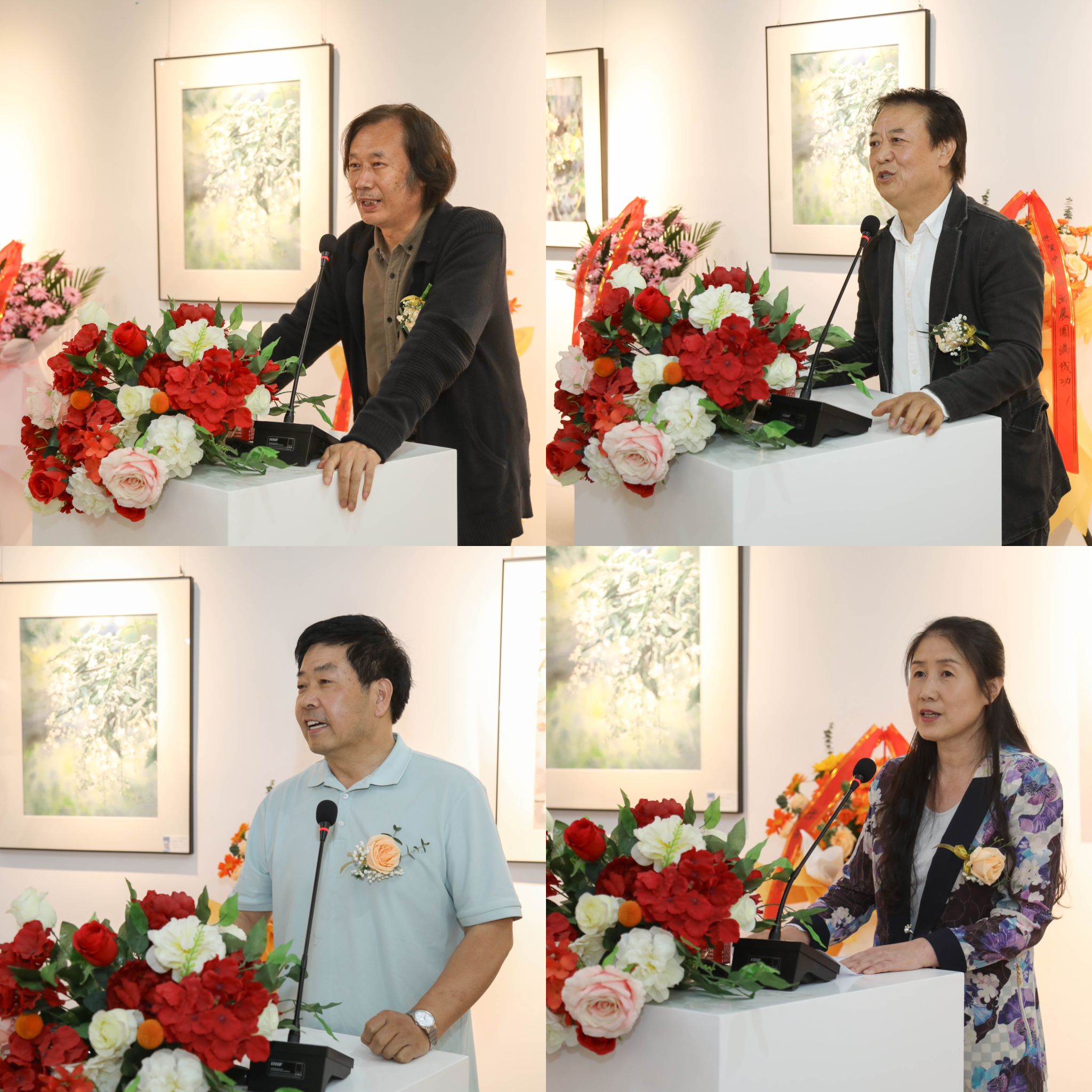 巨石、蔺宝钢、许欲晓先后发表了热情洋溢的讲话。纷纷表示,本次展览是一个融合了艺术与美学,能够代表国家级水准的高层次展览。既展示了水彩粉画艺术的魅力,更体现了无限的发展潜力。史涛老师的水彩粉画以其独特的风格和绚丽多彩的色彩,在水彩艺术创作领域中独树一帜,不仅表达出对自然描绘的细腻与浪漫,又展现出对生活深邃的感悟与温情。这次展览中的作品,无疑会给大家带来了一场视觉的盛宴。
