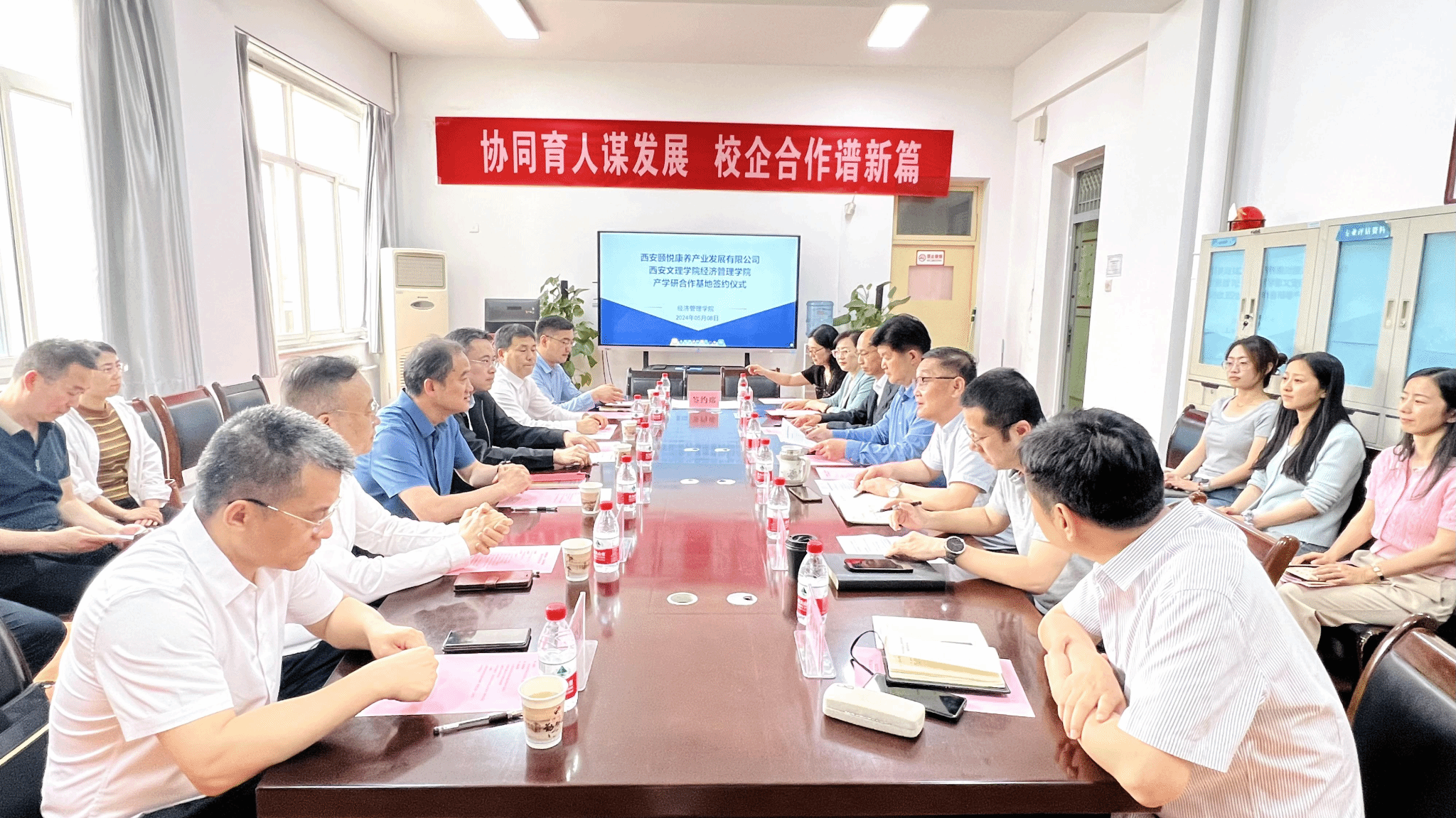 为深化人才培养、推进产教融合高质量发展,5月8日上午,经济管理学院与西安颐悦康养产业发展有限公司举行产学研合作基地及大学生实践就业一体化基地签约授牌仪式。西投控股公司总经理刘钊、副总经理郭海民、纪委书记郭振山,西投下属公司西安颐悦康养产业发展有限公司董事长王彦皓、高校事务合作部负责人魏艺明及相关人员参加,学校党委委员、副校长刘明利,计划财务处处长马喆、经济管理学院院长闫荣国、副书记朱芳芳、副院长董冠华、养老服务管理系主任马云超及养老服务管理专业教师代表参加活动。学院党总支书记陈沛主持签约仪式。