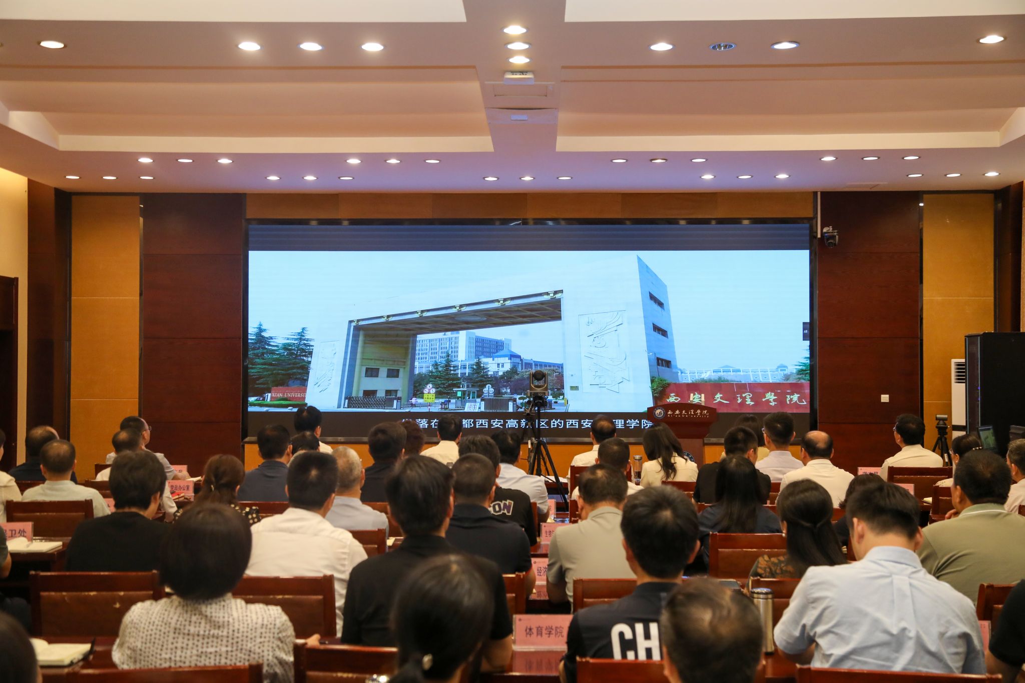 最后,与会人员集体观看了学校《春风化雨,玉汝于成》的宣传片。
