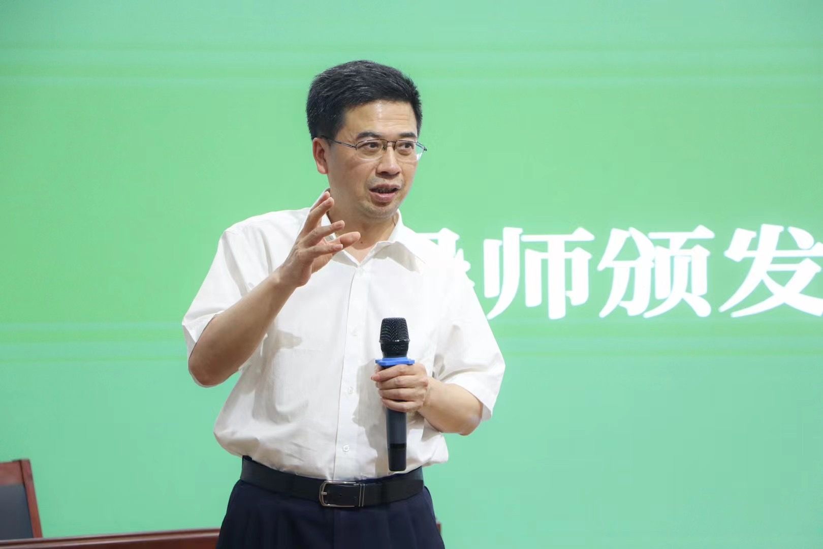 陈刚现场观看了学生的拍摄作品后,为文学院聘任的四位行业导师颁发了聘书并发表讲话。陈刚以大秦帝国的创作为例,强调了戏剧影视文学专业学生需要面对不同行业和领域的壁垒,具备广博的知识面和吃苦耐劳的精神,才能创作出有深度、有思想的作品。同时,他指出戏剧影视文学专业在服务地方、推动文化产业发展前景广阔,鼓励学生们多进行专业实践,同时关注内容和市场,积极挖掘历史故事和现实社会生产生活的资源,创作出服务社会的优秀作品。