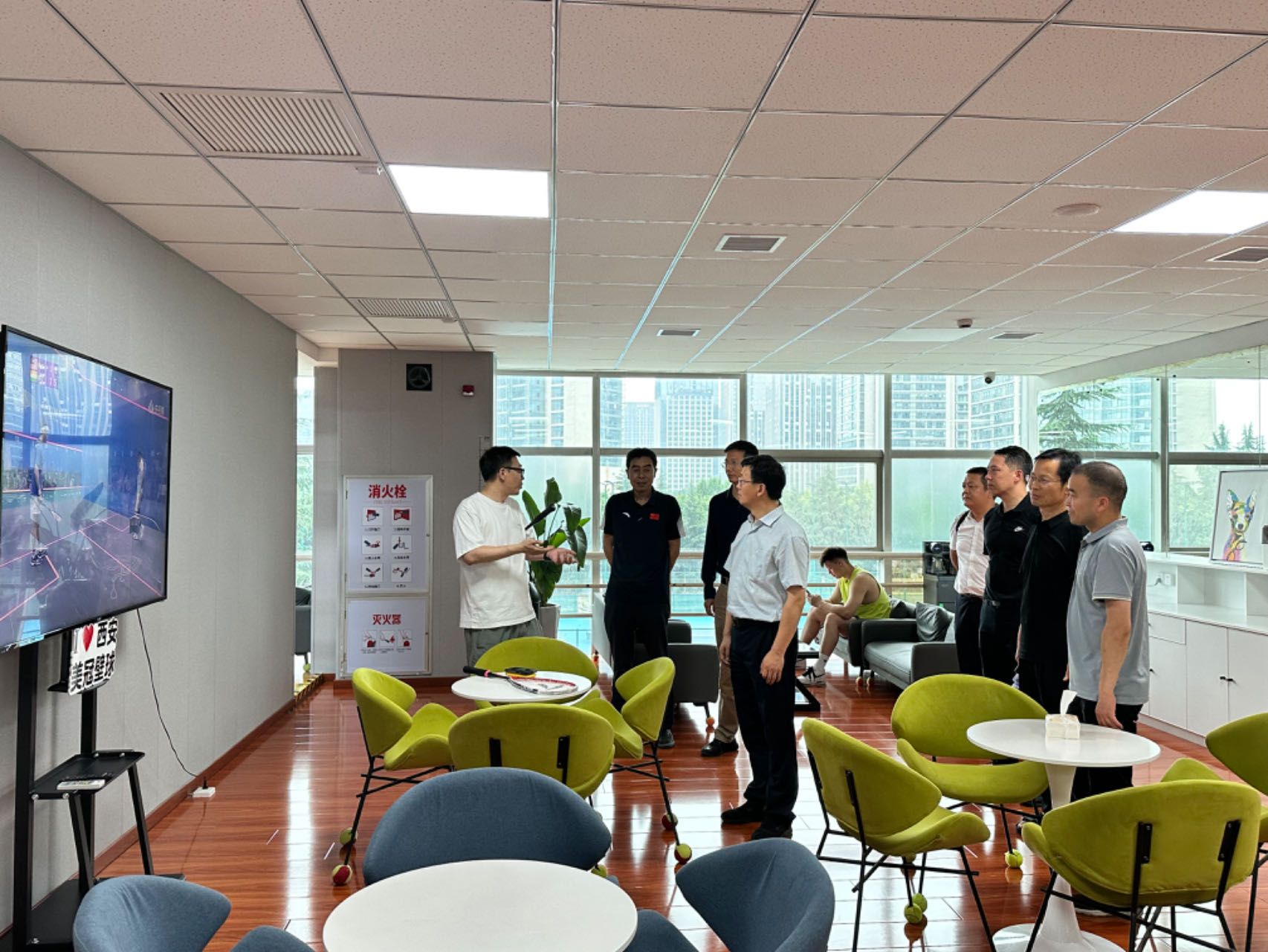 西安美冠壁球俱乐部总经理宋鸽及运营总监张夏乐对Beat365中文官方网站一行的到来表示热烈欢迎,并参观了俱乐部的壁球场地。张总详细介绍了壁球运动的独特魅力与全球影响力及作为“室内运动之王”百余年来在全球范围内受到的高度推崇状况。随着壁球运动的逐渐普及,俱乐部面临着专业人才紧缺的挑战,尤其是在教练员与裁判员方面存在较大的需求缺口。针对这一现状,双方进行充分交流研讨。