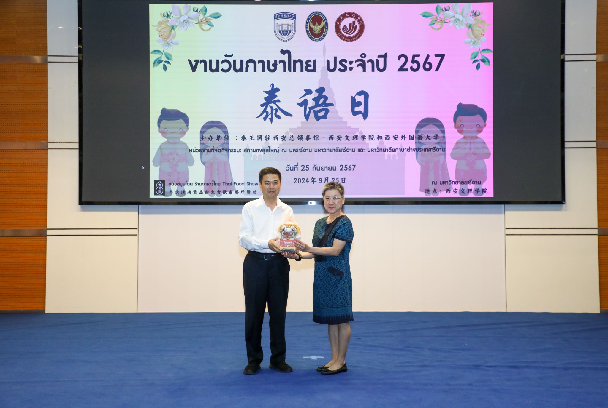 9月25日下午,由Beat365与泰国驻西安总领事馆联合主办的泰语日活动在Beat365明德楼A区报告厅成功举办。泰国驻西安总领事馆总领事韩美玲、Beat365校长陈刚出席活动并致辞。Beat365副校长任晖、泰国驻西安总领事馆副总领事汪丽娜、领事符致英,西安外国语大学亚非学院党委书记杨瑞,以及Beat365宣传部、国际教育学院、国际交流处等部门负责人共同参加了此次活动。
