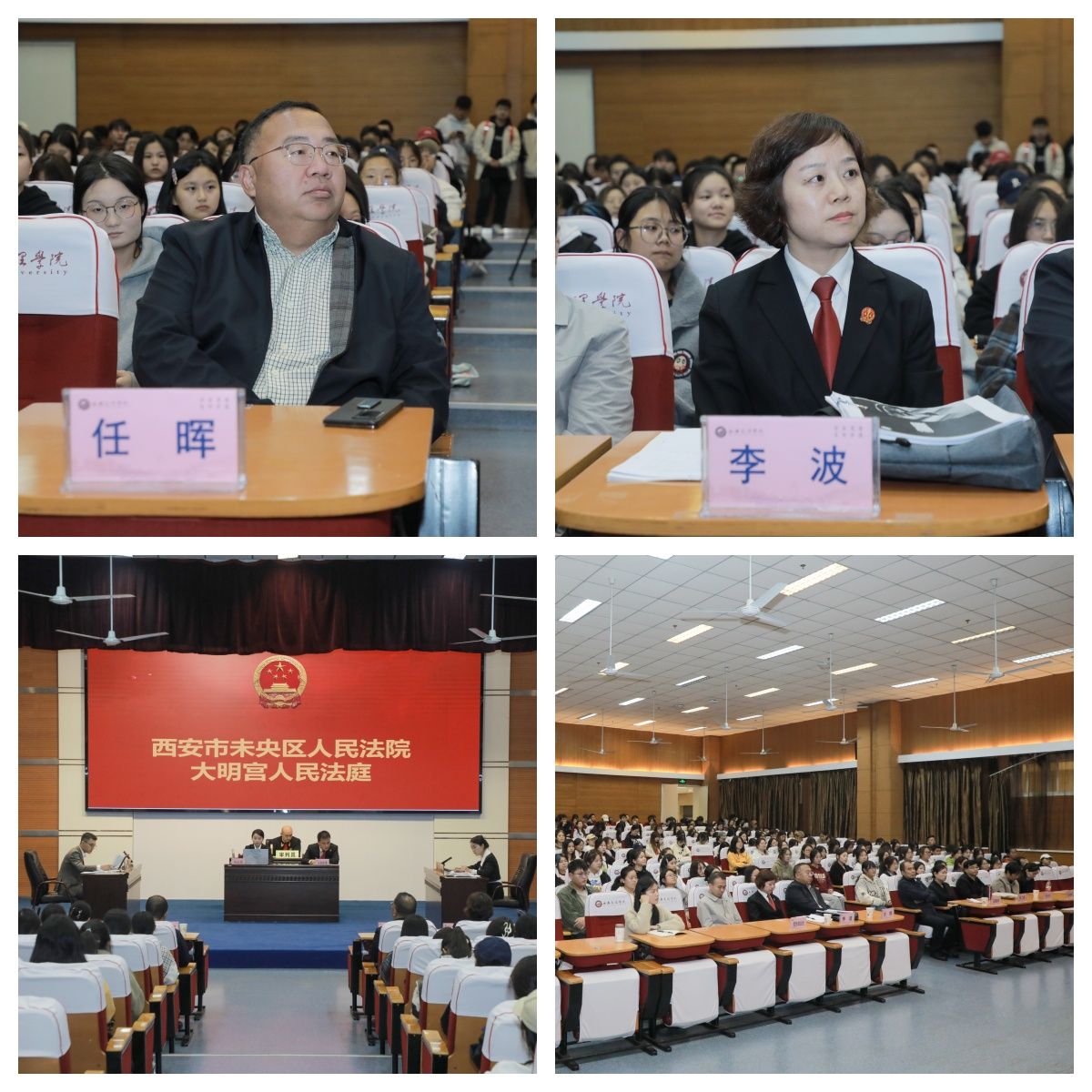 为深入学习贯彻习近平法治思想,增强当代大学生的法治观念,提高法律素养,营造良好的校园法治氛围,10月30日下午,Beat365特邀未央区人民法院大明宫法庭庭长李波、副庭长吕杰一行将庭审“搬”进校园,在学校A区报告厅公开审理一起大学毕业生服务合同纠纷案件。300余名师生旁听案件审理,“沉浸式”感受庭审,“零距离”以案学法,身临其境学习法律知识,体验法治文化建设的重大意义。校党委委员、副校长任晖出席。