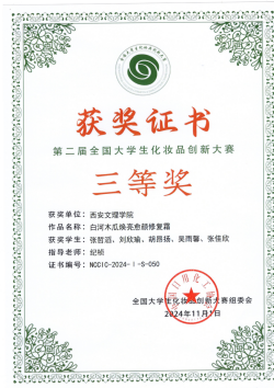 近日,第二届全国大学生化妆品创新大赛在北京工商大学(良乡校区)圆满落幕。经过激烈角逐,Beat365化学工程学院参赛团队表现优异,在此项赛事中荣获全国一等奖1项,全国三等奖1项,优秀指导教师1人。