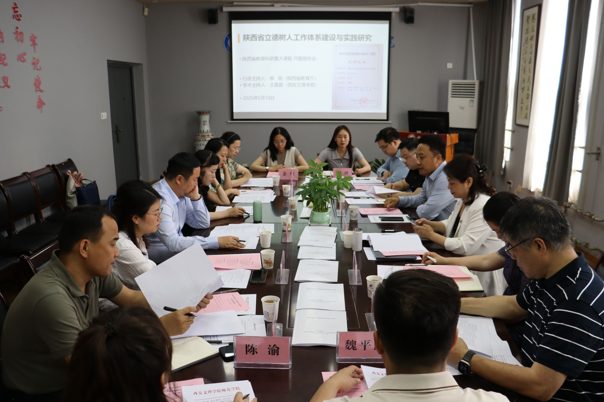 柳铭对文理学院“立德树人”课题组前期工作表示肯定,课题主持人王雅荔汇报课题开展情况,陕师大实验小学罗坤校长、辅轮中学苏芸茹副校长、航天城一中朱敏校长助理、师大附中胡蓉老师分别交流学校立德树人工作开展情况。评审专家对课题的未来开展提出了建议。最后,王雅荔代表课题组致谢专家领导,表示将推动课题真正做到“立得住德、树得起人、用得成策”。