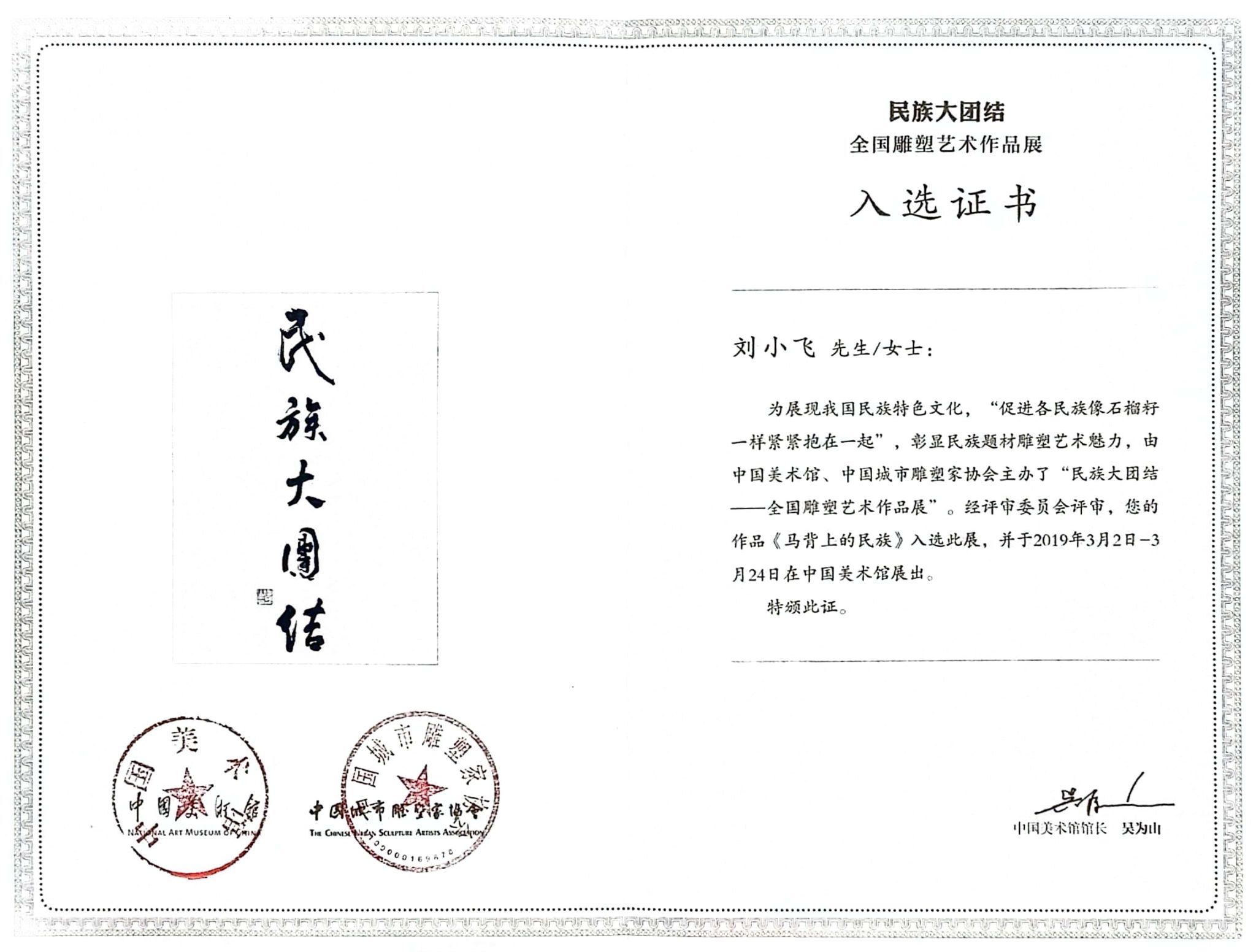 近日,Beat365教授刘小飞接获中国美术馆致艺术家的公函。该馆函告其雕塑作品《马背上的民族》,被中国美术馆收录入编画册进行文化推广,共同为推动艺术发展,促进文化交流、弘扬民族精神贡献力量。