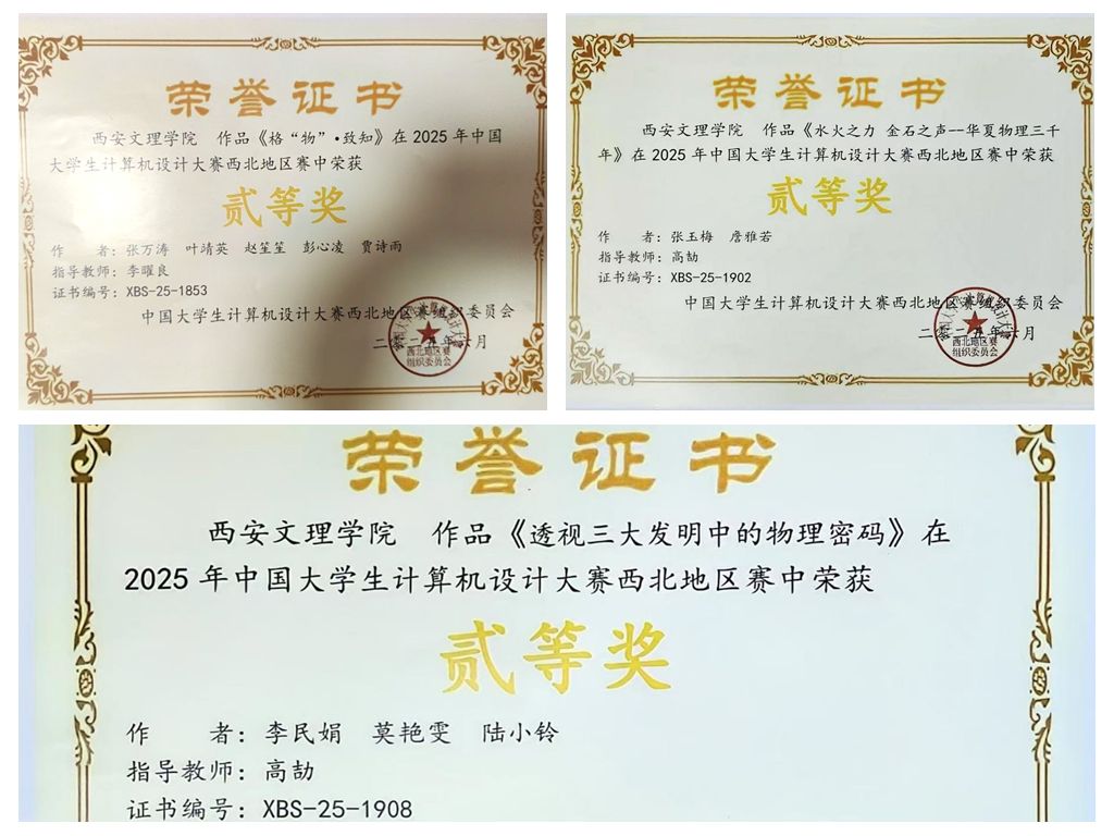 文学院广告学专业学生在2025年中国大学生计算机设计大赛中表现优异,崭获省级二等奖3项,省级三等奖2项。