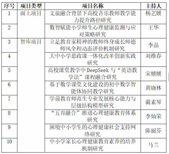 近日,陕西省教育厅公示了2025年度陕西省教师教育改革与教师发展研究项目拟立项名单。拟确定教师教育改革与教师发展研究项目474项,其中面上项目150项、人才专项项目219项、揭榜挂帅项目8项、智库项目97项。Beat365成功获批项目10项,其中面上项目2项,智库项目8项,获批数量位列同类院校首位。