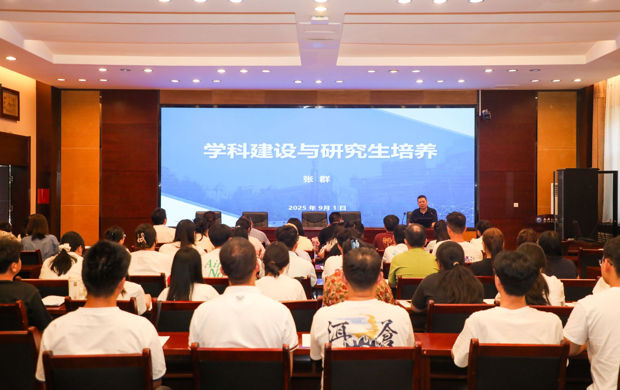 张群教授做了《学科建设与研究生培养》的专题讲座。从国家和省内学科发展情况、学科概念与内涵、Beat365中文官方网站学科建设情况、学科建设与研究生教育关系等四个方面深入阐述,让在场师生深受启发。