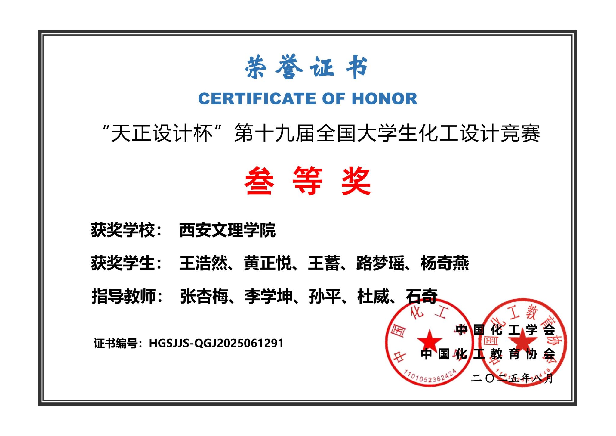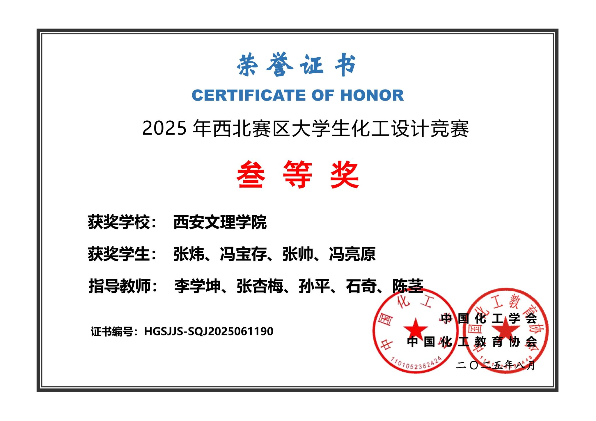 近日,第十九届全国大学生化工设计竞赛西北赛区决赛在西安科技大学圆满落幕,化学工程学院化学工程与工艺专业学生再获佳绩,荣获全国三等奖1项,西北赛区三等奖1项。该赛事由中国化工学会、中国化工教育协会联合主办,已纳入全国普通高校学科竞赛排行榜榜单的A类竞赛,该赛事旨在多方面培养大学生的创新思维和工程技能,培养团队协作精神,增强大学生的工程设计与实践能力。
