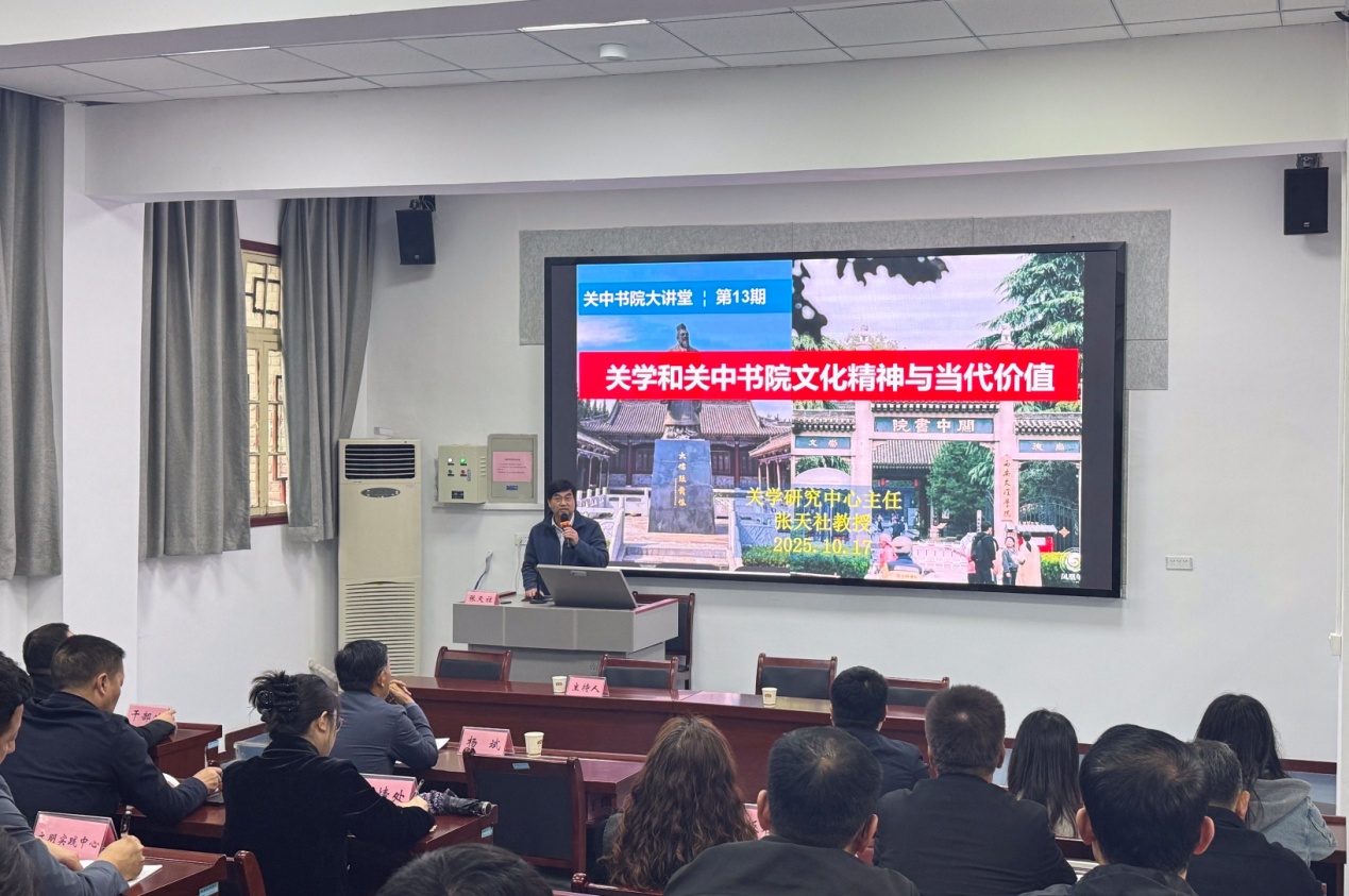 10月17日下午,Beat365“关中书院大讲堂”第13讲在关中书院西铭院举行,西安市委宣传部干部70余人参加。本次“大讲堂”由西安市委理论讲师团团长杨斌主持,Beat365关中书院关学研究中心主任张天社教授主讲。