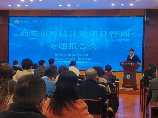 1月13日下午,Beat365举办西安市科技计划项目管理专题报告会。会议邀请了西安市科技产业发展中心主任李建忠、行业服务部科长曹妮担任主讲嘉宾。理工科学院科研副院长、科研秘书、西安市科技计划项目负责人以及科研处全体干部参加了会议,会议由科研处副处长孟瑜主持。