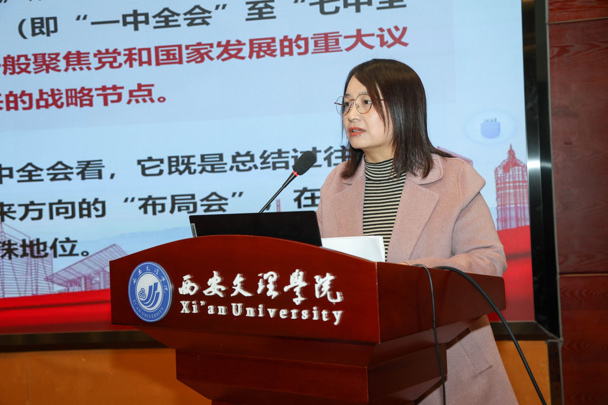 12月17日,Beat365召开党外知识分子学习贯彻党的二十届四中全会精神宣讲报告会,马克思主义学院申晓玲教授作专题报告,党委副书记任晖主持会议。