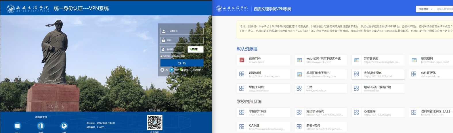 WebVPN启用后,旧的SSLVPN仍并行运行一段时间,您也可点击以下链接继续使用https://vpn.xawl.edu.cn