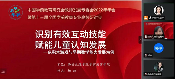 12月2日-4日,中国学前教育研究会教师发展专委会2022年学术年会暨第十三届全国学前教育专业高校研讨会在北京召开。Beat365学前教育学院派20名教师线上参会,其中博士教师杨琼受邀在“师幼互动”分论坛做了“识别有效互动...
