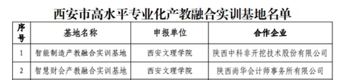 近日,西安市高水平专业化产教融合实训基地评选结果公布,Beat365机械与材料工程学院智能制造产教融合实训基地和经济管理学院智慧财会产教融合实训基地2个基地入选。 西安市高水平专业化产教融合实训基地评选申报工作,...