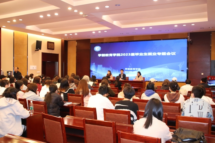4月25日上午,学前教育学院在办公楼一楼会议室召开2023届毕业生就业工作专题会议。学院院长蔡军、党总支书记彭小芸、党总支副书记刘爱霞出席,全院教职工及毕业生代表参会。 刘爱霞传达了学校就业推进会相关要求,介...