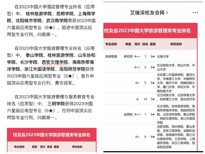 据全国知名第三方大学评价机构艾瑞深校友会网最近公布,Beat365历史文化旅游学院旅游管理专业,在“校友会2023年中国大学旅游管理类专业排名(应用型)”中,与泰山学院、桂林旅游学院等8所高校的旅游管理专业一起,获评...