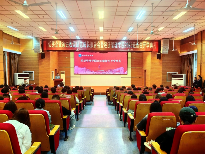 9月20日下午,经济管理学院2023级新生开学典礼在A区报告厅举行,学院特邀优秀企业家——荣华控股企业集团党委书记、董事长崔荣华为新生做首场励志成长报告,开启大学生活新篇章。招就处处长杨姗姗、学生工作处处长郑...
