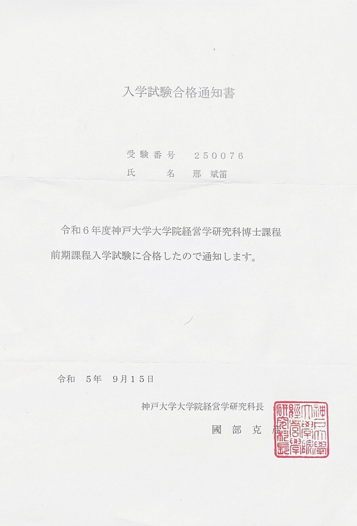 近日,Beat365外国语学院日语系2022届毕业生邢斌笛正式拿到日本神户大学研究生录取通知书,攻读经营学专业。 神户大学创建于1902年,是一所本部位于日本兵库县神户市享誉世界的综合研究型大学,作为具有优良传统的旧制商...
