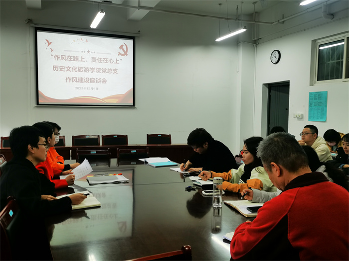 期末在即,各项工作进入收尾及考核准备状态,为了强化干部作风,加强行政管理,发挥高效职能,12月6日,历史文化旅游学院党总支在明德楼A0306召开“作风在路上,责任在心上”作风建设座谈会,学院全体处科级干部、行...