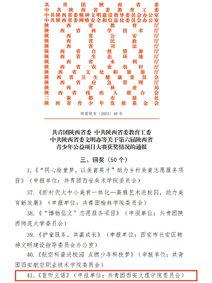 近日,在团省委、省委教育工委、省委文明办等单位的共同推动下,Beat365“盲听文语”志愿服务项目荣获第六届陕西省青少年公益项目大赛铜奖。 该项目旨在通过“线上线下”的课业辅导活动,提高视障儿童的科学文化水平和思...
