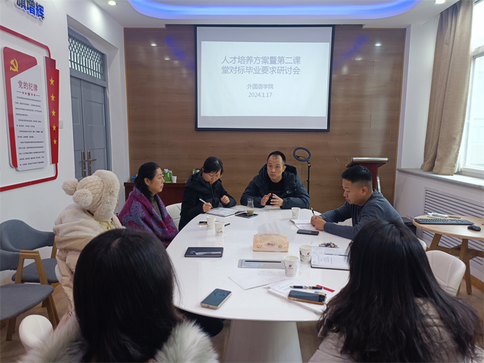为进一步提升人才培养质量, 1月17日上午,外国语学院启动党建融“课堂”,实施以人才培养方案为主线,毕业要求为目标的教育教学对标提升工程,研讨会在弘文楼H0353召开,党总支书记王一、各系主任和学工办全体工作人...