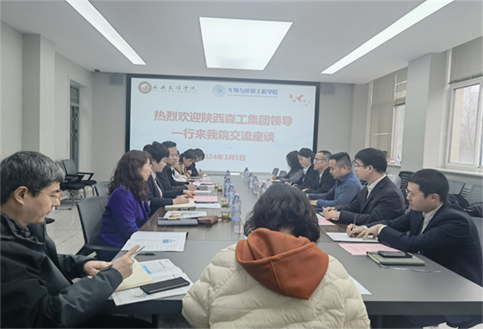 3月5日下午,陕西森工生态环境工程集团有限公司董事长、总工张磊,副董事长王刚等一行6位赴生物与环境工程学院开展产学研合作交流座谈。九三学社陕西省省委青工委副主委、中铁一局生态资源建设指挥部副部长薛祺作为特...