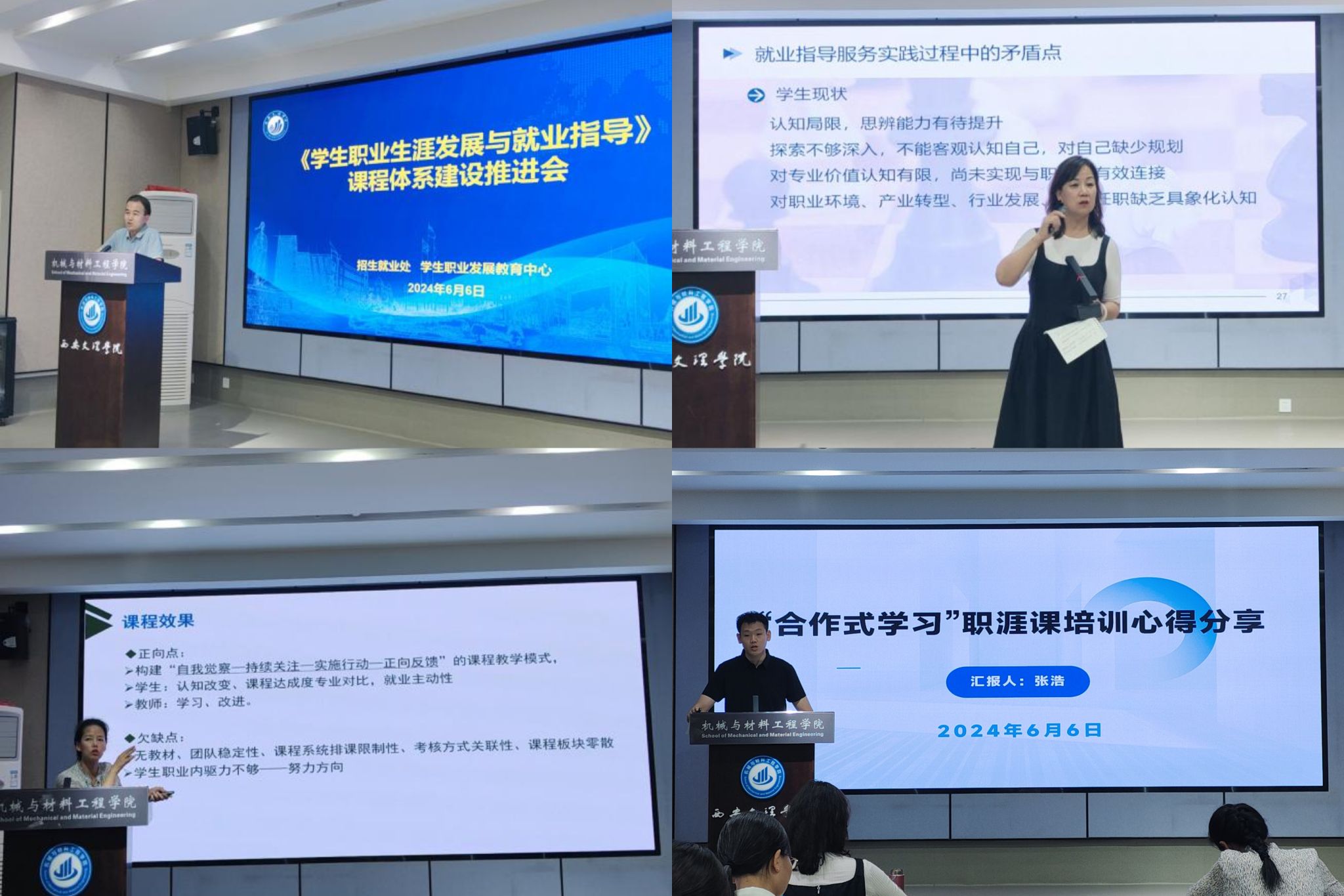 6月6日下午,由招生就业处、学生职业生涯发展教育中心联合召开《学生职业生涯发展与就业指导》课程体系建设推进会。各学院分管学生工作的领导、课程建设负责人、任课教师及就业专责辅导员参会,会议由招生就业处处长李小勇主持。会议中学习了《教育部关于做好2024届全国普通高校毕业生就业创业工作》通知中关于加强生涯教育和就业指导的要求,通报了目前学校课程开设的情况。张亚环分享了参加首届全国大学生职业规划大赛陕西赛区教学赛道备赛情况、...