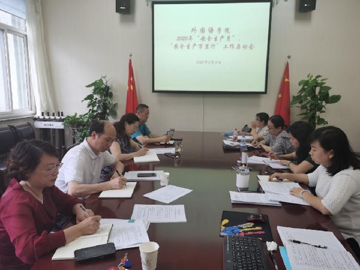6月15日下午,外国语学院召开了2020年“安全生产月”、“安全生产万里行”工作启动会。全体院领导、办公室、学工办主任参会。副书记狄曼主持会议。 会上,狄曼传达了学校安全会议精神,带领与会人员学习了学校《2020...