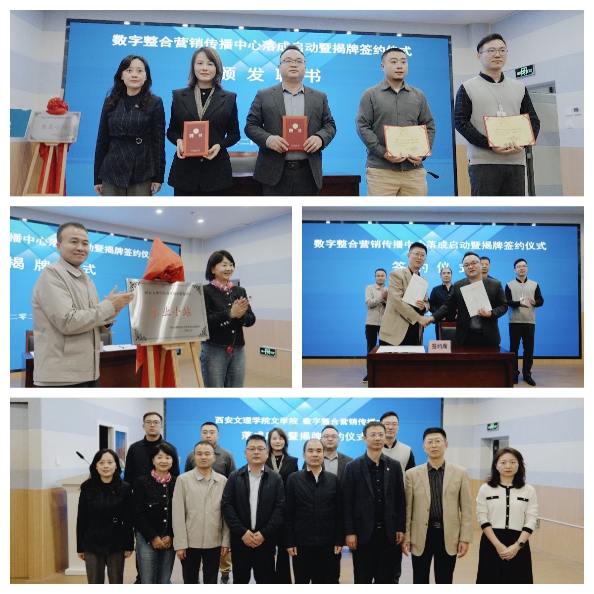 10月30日下午,文学院在明德楼C0415举办数字整合营销传播中心落成启动暨揭牌签约仪式。校党委委员、宣传部部长、服务地方办主任田建邦,教务处处长蔡军,招生与就业处处长李小勇,文学院院长郝延军、党总支书记李莎莎,及西安市雁塔区人社局副局长马如愿、人才服务中心主任郭瑛,眸数字(西安)智慧科技有限责任公司董事长冯浩、陕西金海豚传媒科技集团有限公司总经理孙晓辉等出席仪式。仪式由文学院广告学系主任张倩主持。郝延军在致辞中首先对到场嘉宾表示诚挚的欢迎。...