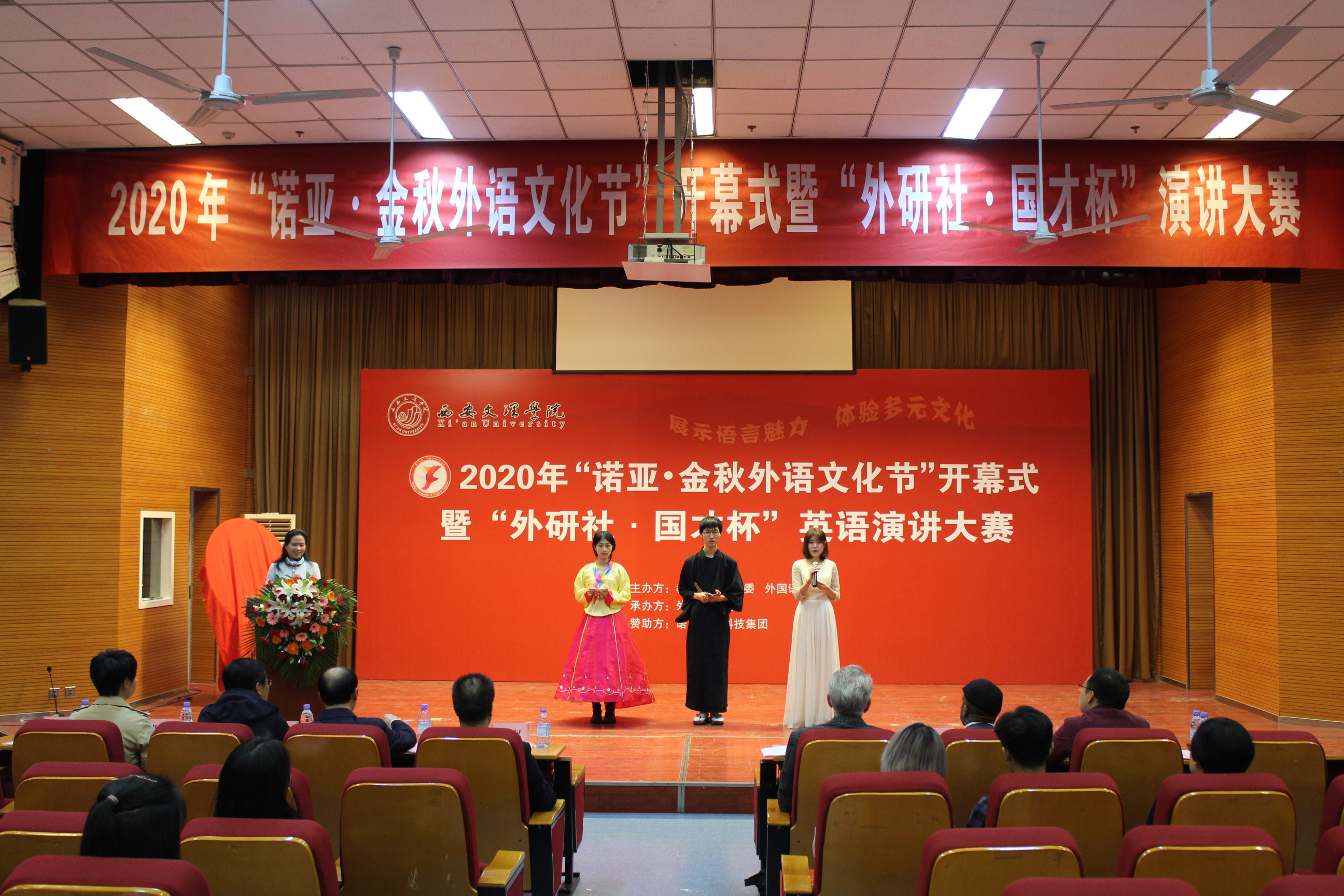10月7日,Beat3652020年“诺亚•金秋外语文化节”开幕式暨“外研社•国才杯”英语演讲大赛在明德楼A区报告厅举行。Beat365副校长韩权、校党委委员、组织部部长袁卫敏、相关职能部门负责人、二级学院教学院长代表、外国语学...