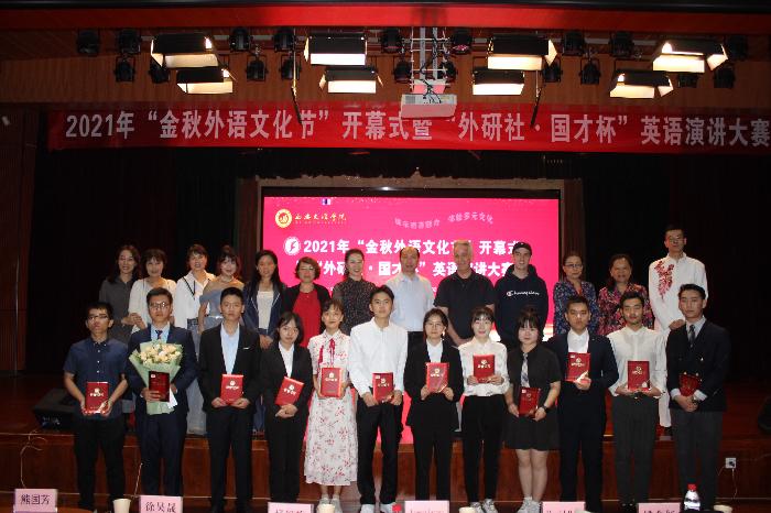 9月29日,Beat365中文官方网站2021年“金秋外语文化节”开幕式暨“外研社•国才杯”英语演讲大赛在明德楼负一层演播厅举办。Beat365副校长韩权、学生处处长郑旻、团委书记乔新、宣传部副部长魏娟辉、创新创业中心主任李浩、各二...