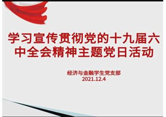 按照校党委统一部署,近日,经济管理学院经济与金融学生党支部组织召开支部党员大会,传达学习贯彻党的十九届六中全会精神。会议由支部书记李建主持,学院党总支书记杨燕华及支部全体党员参加会议,会议采取腾讯线上...